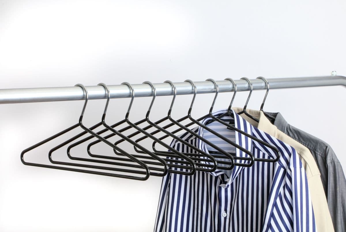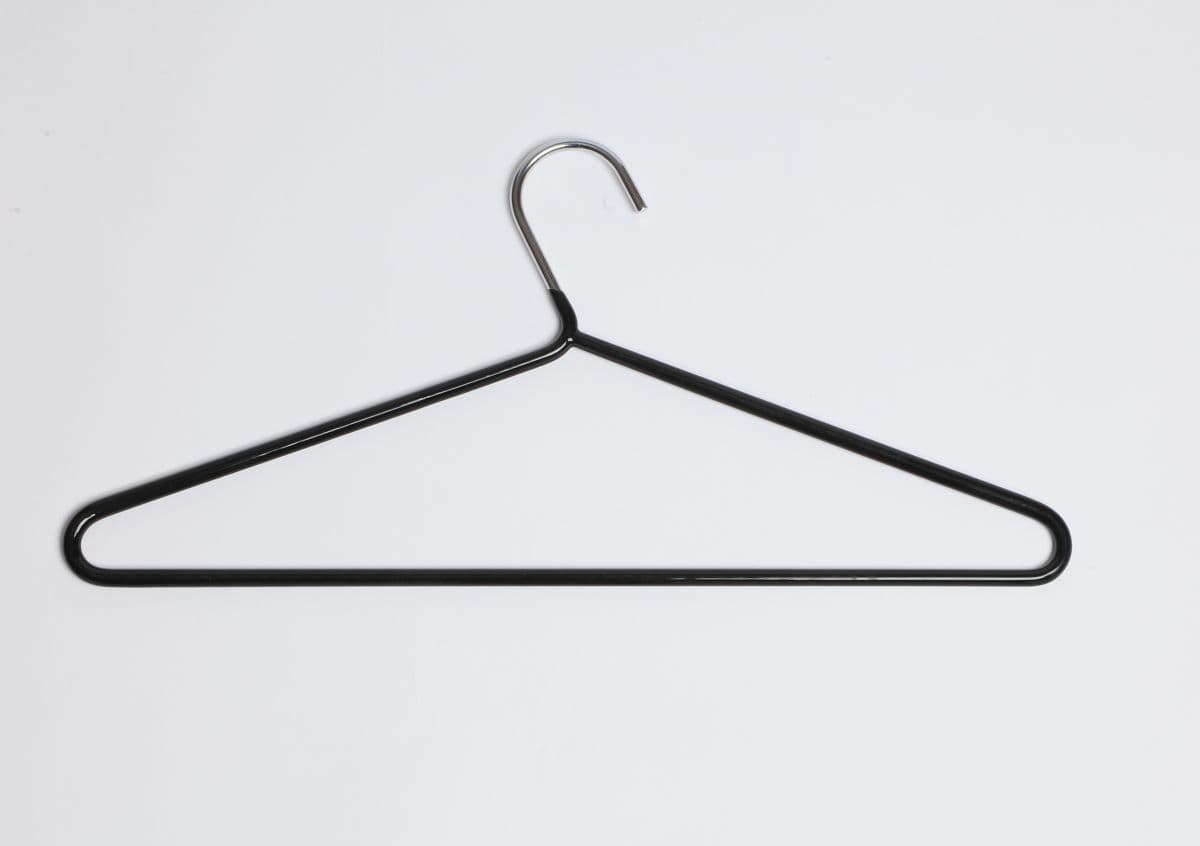 A new variation on our long-standing Chrome hanger. It retains the Chrome hook but the body of the hanger is coated in Black PVC which has the effect of making the trouser bar non-slip. It is manufactured from 5.5mm steel. One of the images shows the thickness of the material against a one pound coin. It is almost impossible to bend in normal use.